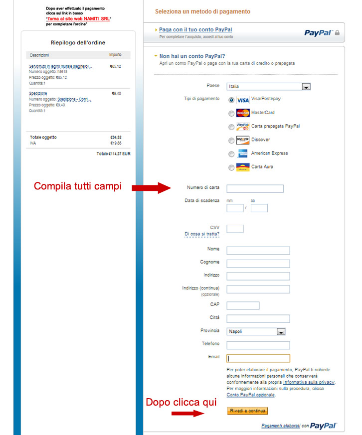 1.Se hai un conto Paypal, puoi utilizzare Paypal tranquillamente, inserendo e-mail e password Paypal.
