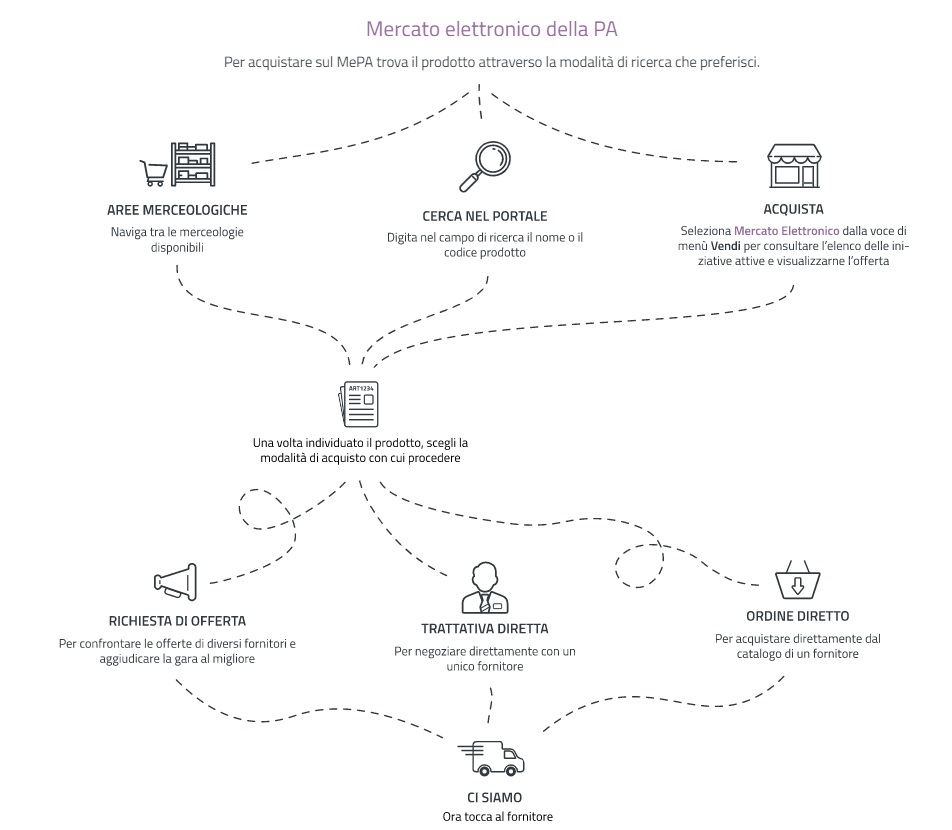 Il Mepa permette alle Pubbliche Amministrazioni di acquistare in modo tracciabile e trasparente beni e servizi esclusivamente da fornitori abilitati.