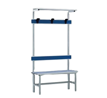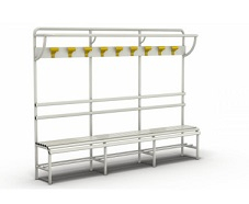 Alcuni modelli di panchine spogliatoio prevedono anche la presenza di un appendiabiti e/o poggiascarpe.